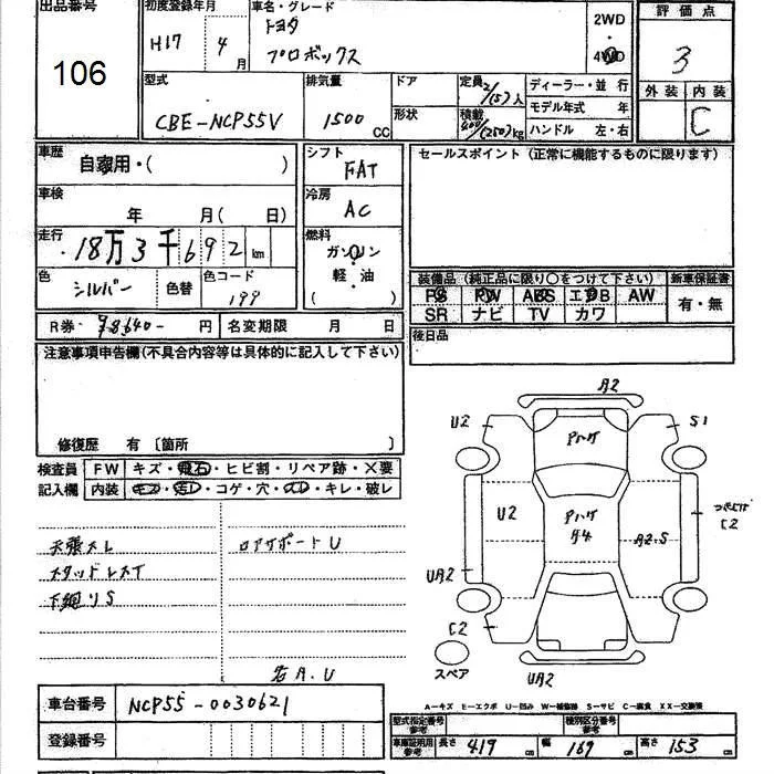 Toyota PROBOX с аукциона Японии JU Ishikawa лот № 106