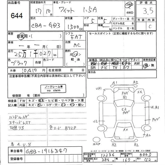 Honda FIT с аукциона Японии JU Ishikawa лот № 644