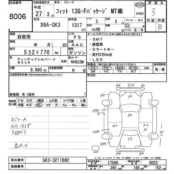 Honda FIT с аукциона Японии JU Ishikawa лот № 8006