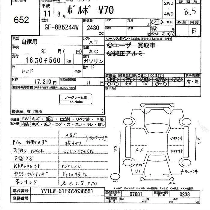 Volvo V70 с аукциона Японии JU Ishikawa лот № 652