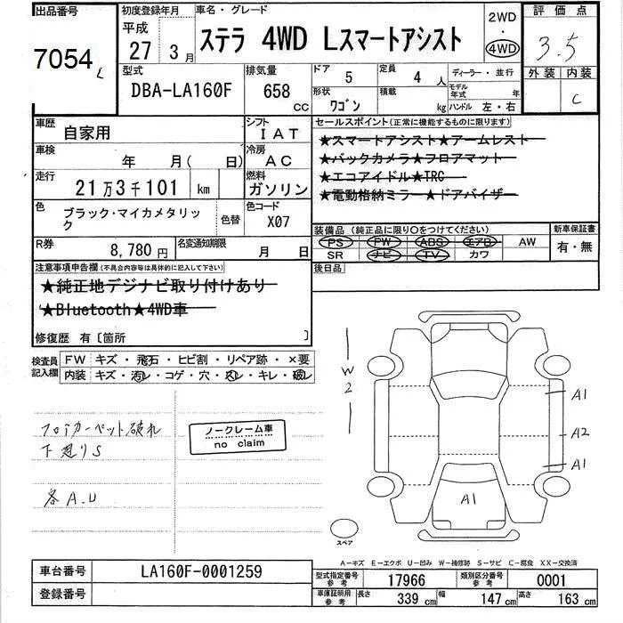 Subaru STELLA с аукциона Японии JU Ishikawa лот № 7054