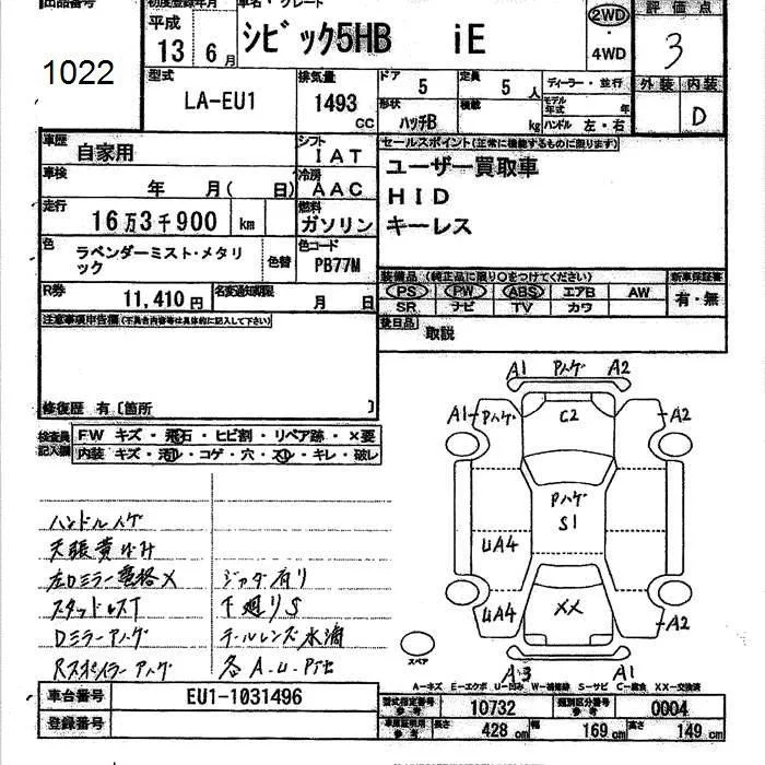 Honda CIVIC с аукциона Японии JU Ishikawa лот № 1022