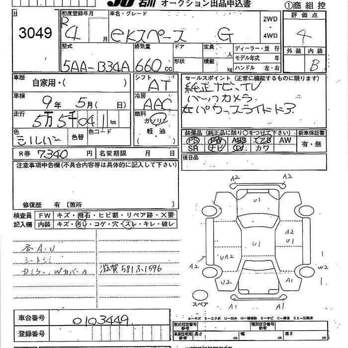 Mitsubishi EK SPACE с аукциона Японии JU Ishikawa лот № 3049