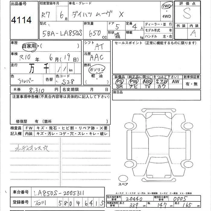 Daihatsu MOVE с аукциона Японии JU Ishikawa лот № 4114