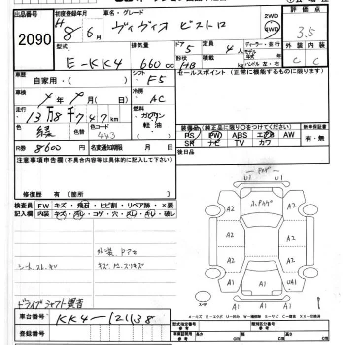 Subaru VIVIO с аукциона Японии JU Ibaraki лот № 2090