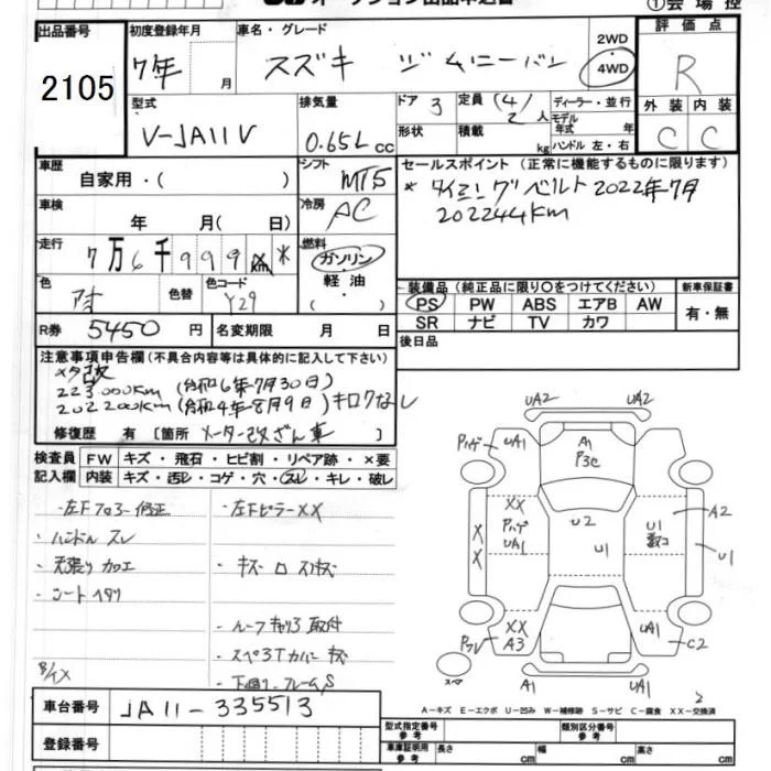Suzuki JIMNY с аукциона Японии JU Ibaraki лот № 2105