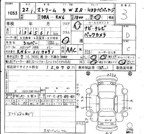 Honda STREAM с аукциона Японии IAA Osaka лот № 1053