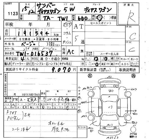 Subaru GOLF ALLTRACK с аукциона Японии IAA Osaka лот № 1123
