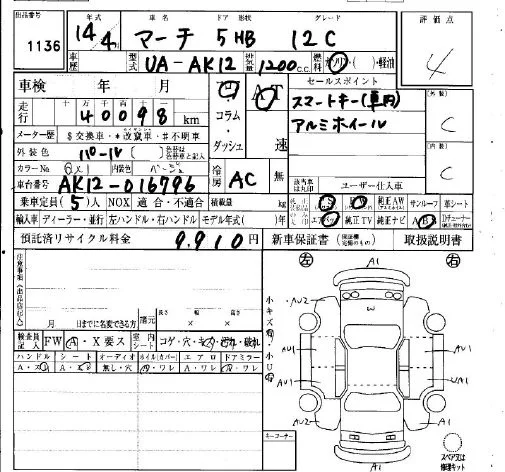Nissan MARCH с аукциона Японии IAA Osaka лот № 1136
