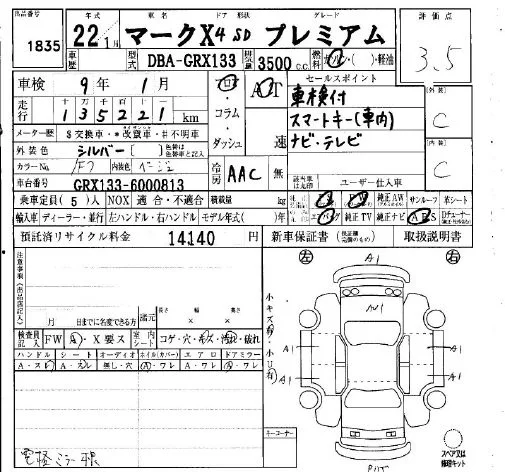 Toyota MARK X с аукциона Японии IAA Osaka лот № 1835