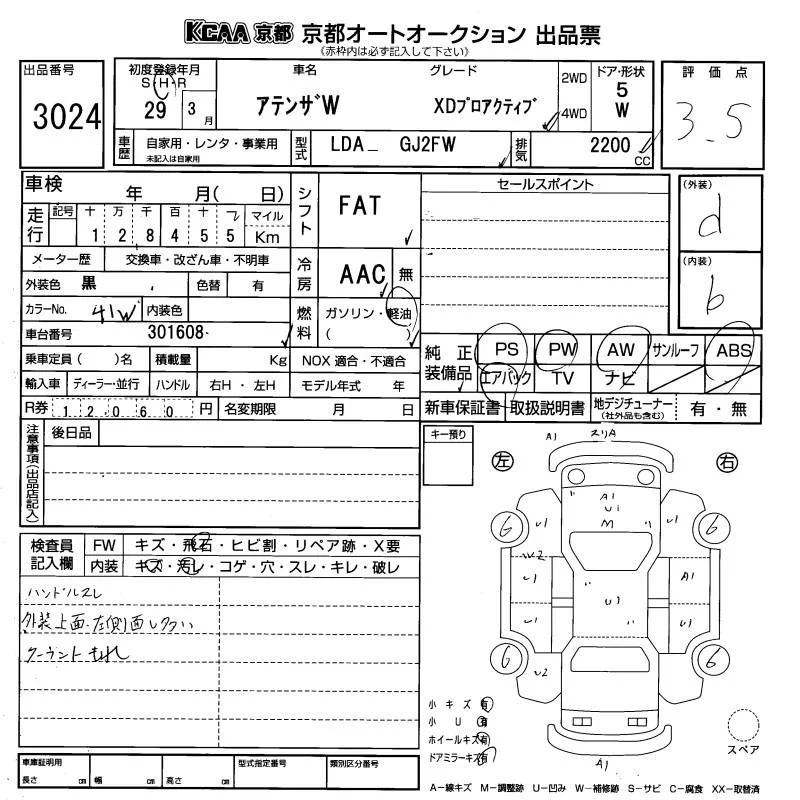 Mazda ATENZA WAGON с аукциона Японии KCAA Kyoto лот № 3024