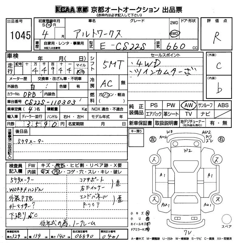 Suzuki ALTO с аукциона Японии KCAA Kyoto лот № 1045