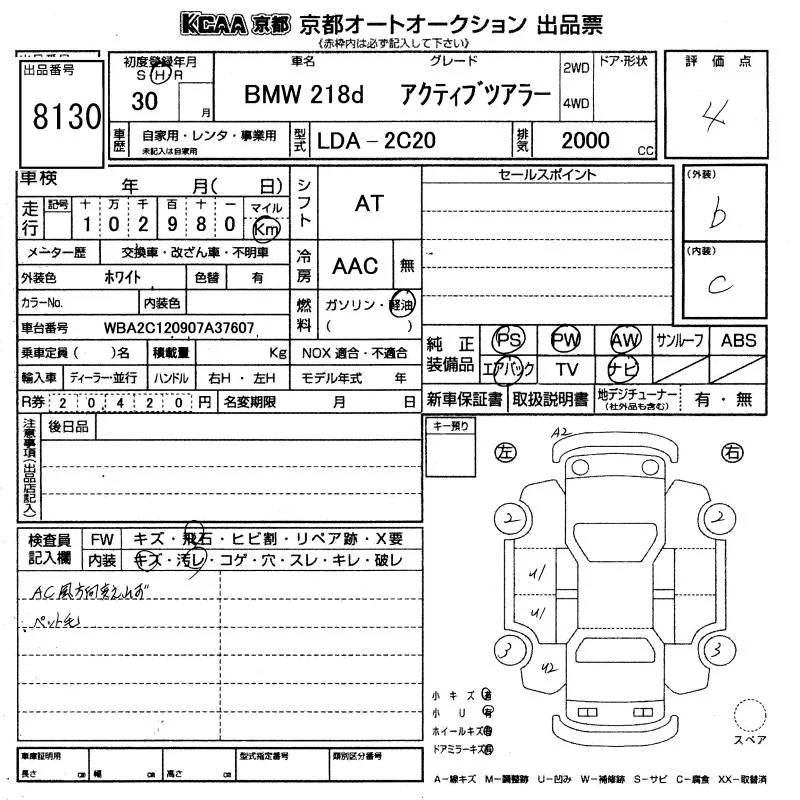 BMW 2-Series с аукциона Японии KCAA Kyoto лот № 8130