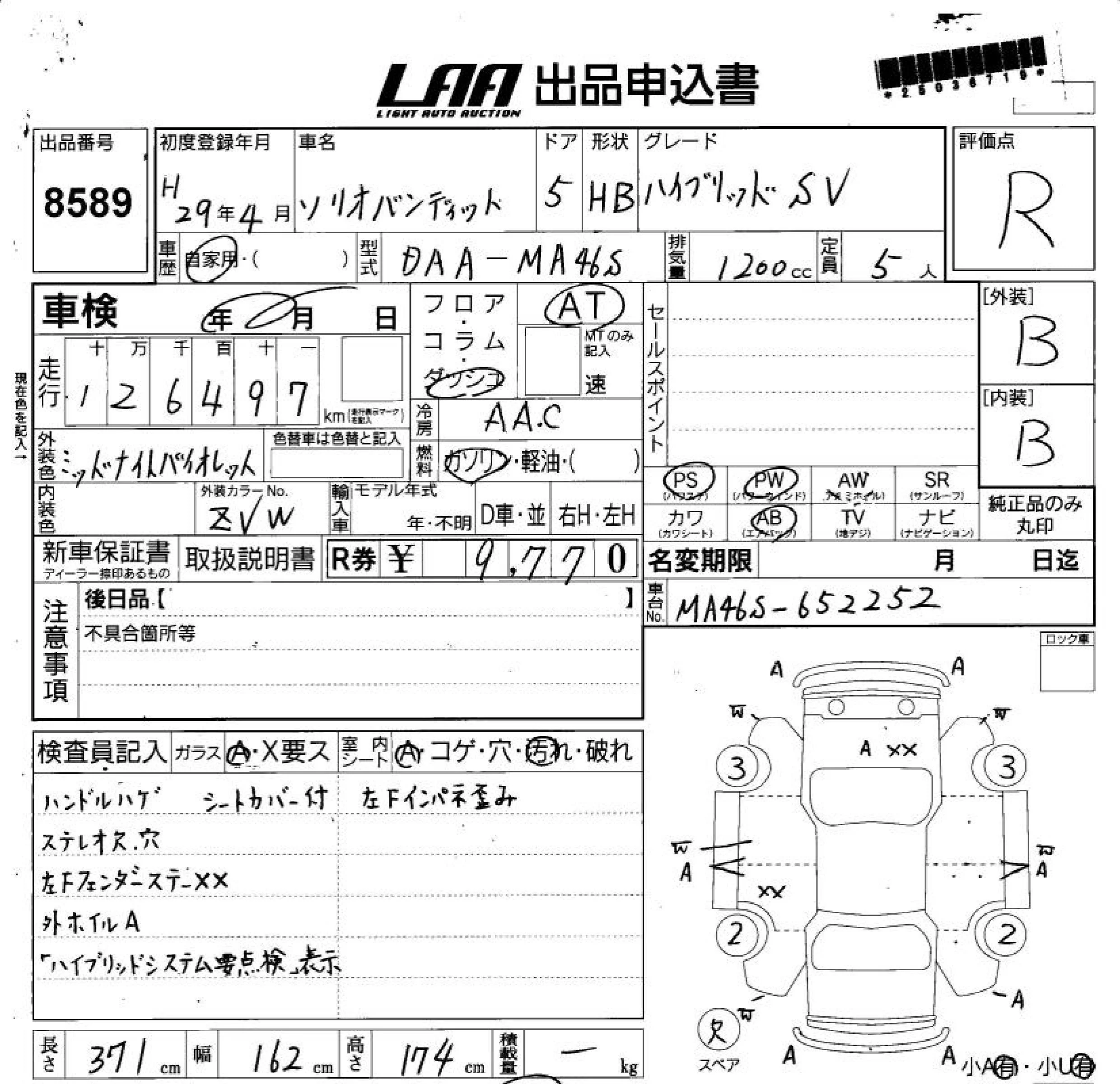 Suzuki SOLIO с аукциона Японии LAA Shikoku лот № 8589