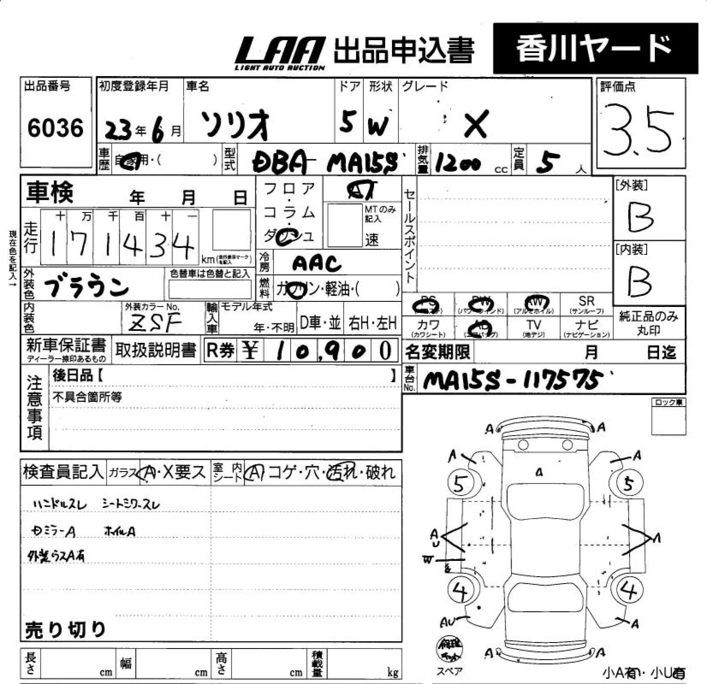 Suzuki SOLIO с аукциона Японии LAA Shikoku лот № 6036