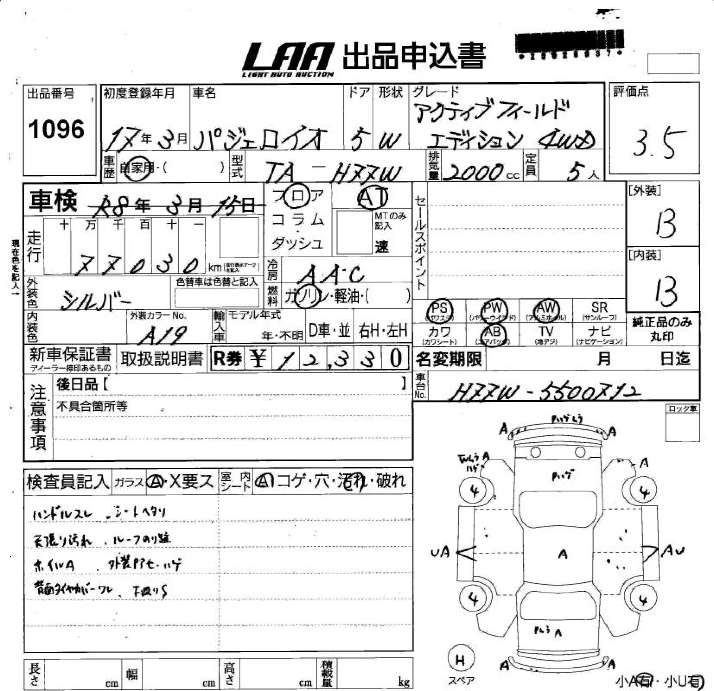 Mitsubishi PAJERO IO с аукциона Японии LAA Shikoku лот № 1096