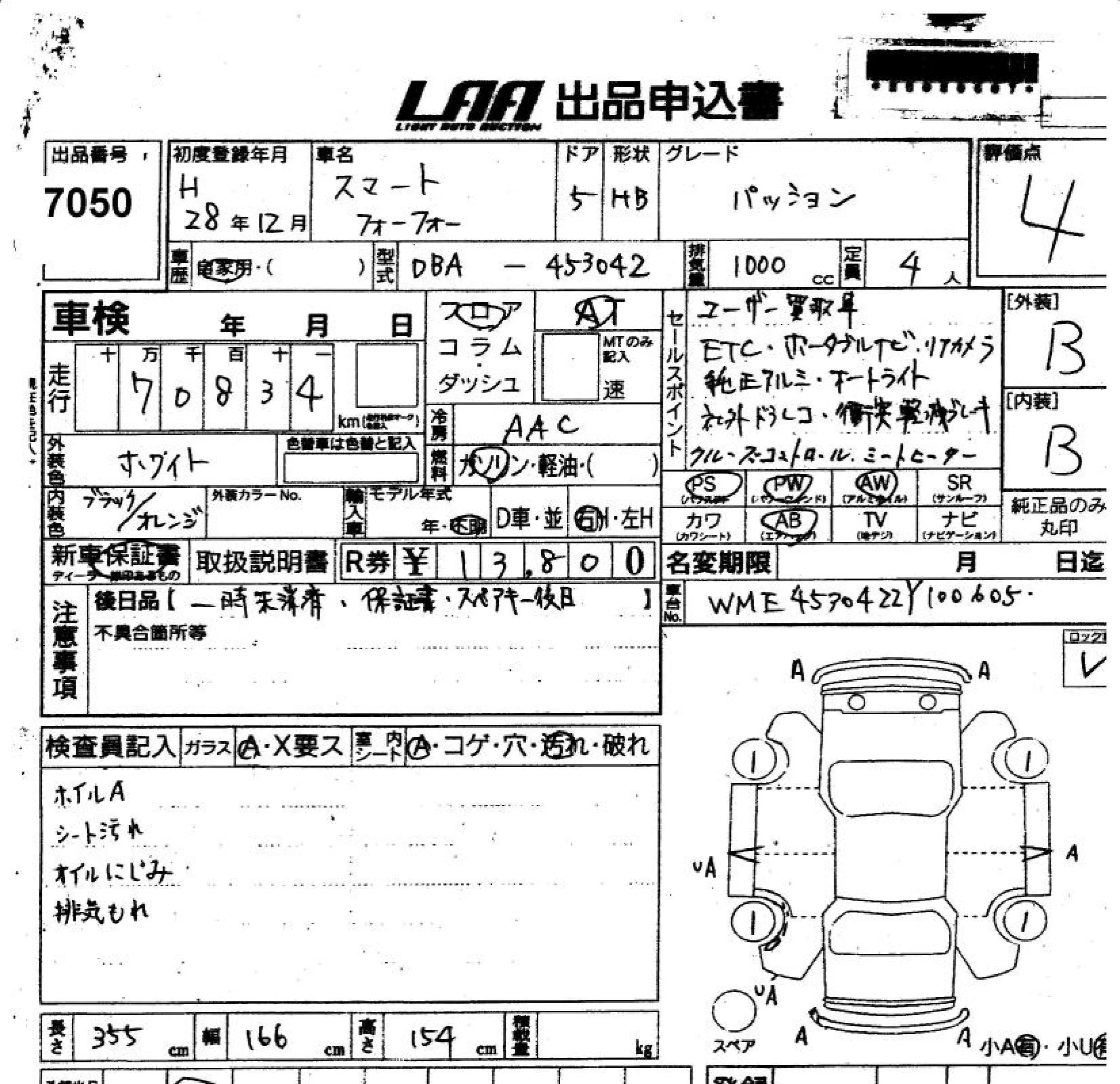 Smart FORFOUR с аукциона Японии LAA Shikoku лот № 7050