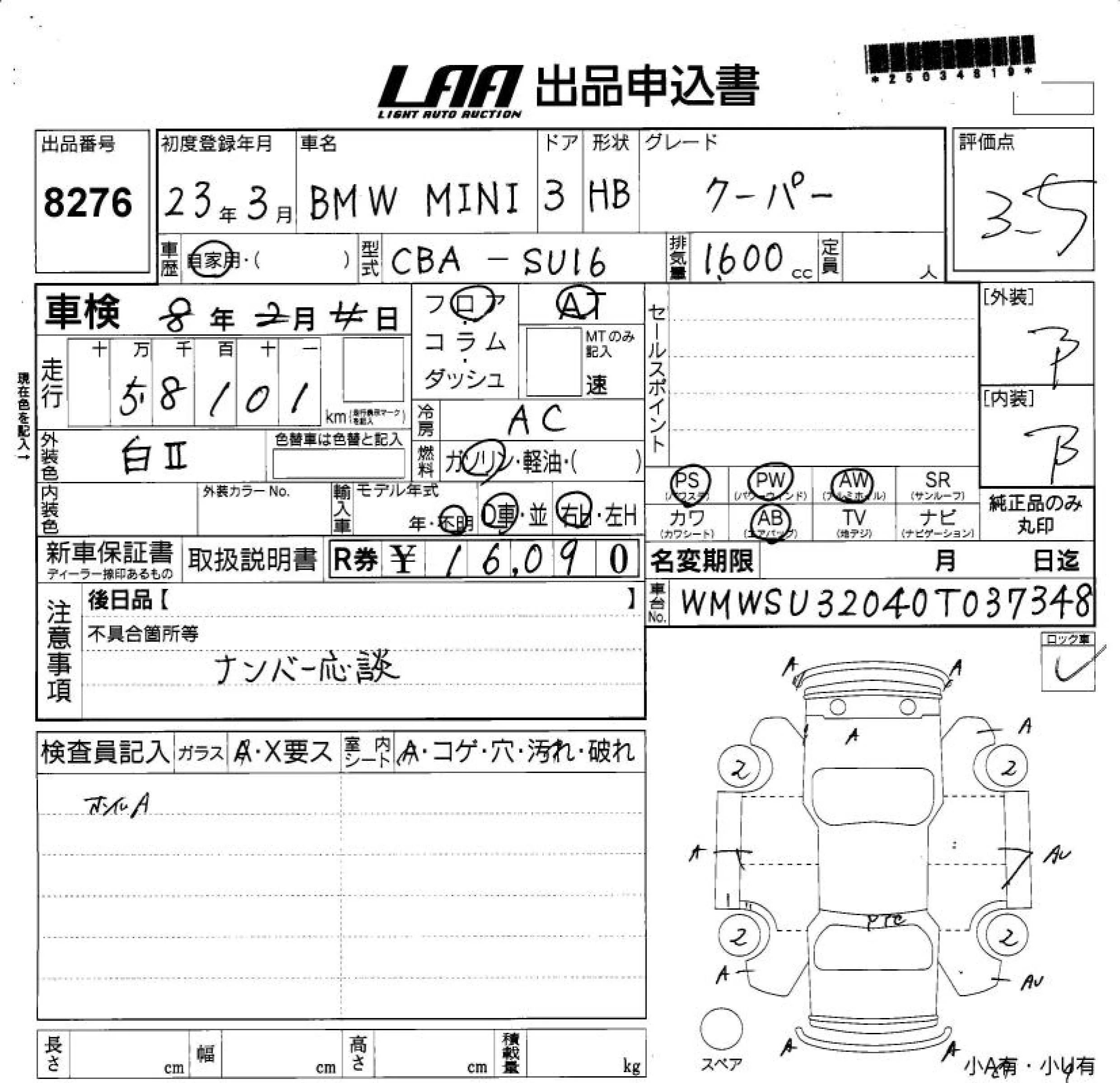 BMW MINI с аукциона Японии LAA Shikoku лот № 8276