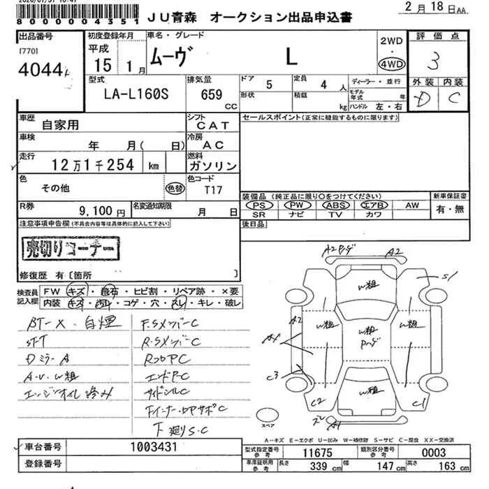 Daihatsu MOVE с аукциона Японии JU Aomori лот № 4044