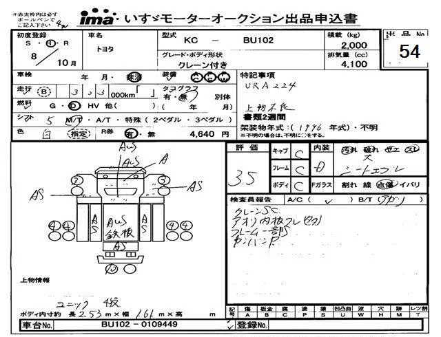 Toyota DYNA с аукциона Японии Isuzu Tokyo лот № 54