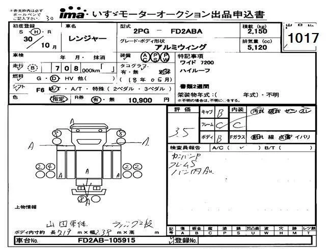 Hino RANGER с аукциона Японии Isuzu Tokyo лот № 1017