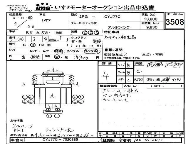 Isuzu TRUCK с аукциона Японии Isuzu Tokyo лот № 3508
