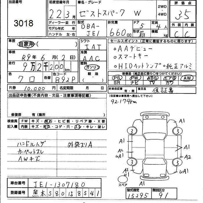 Honda ZEST с аукциона Японии JU Kumamoto лот № 3018