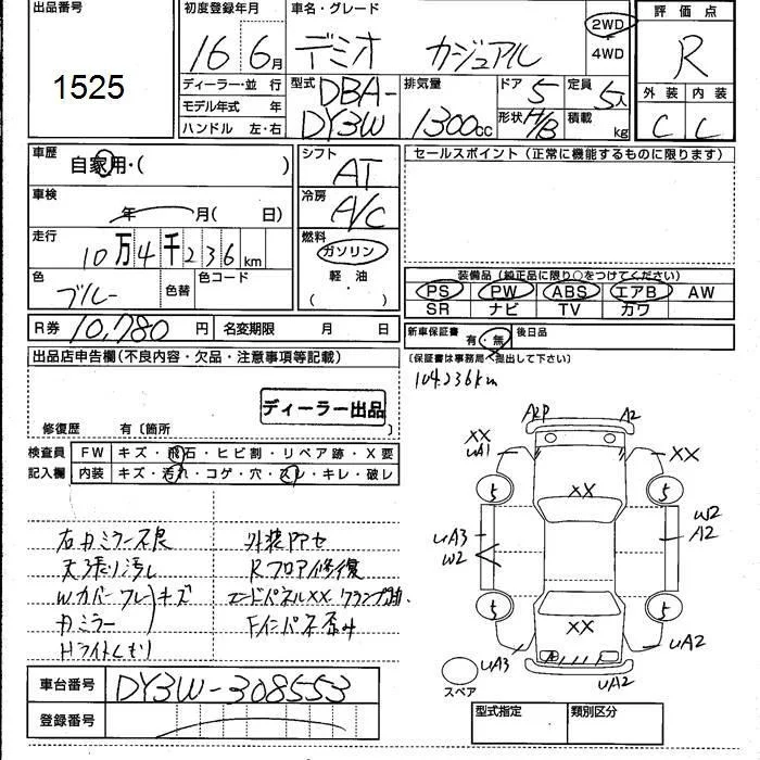 Mazda DEMIO с аукциона Японии JU Kumamoto лот № 1525