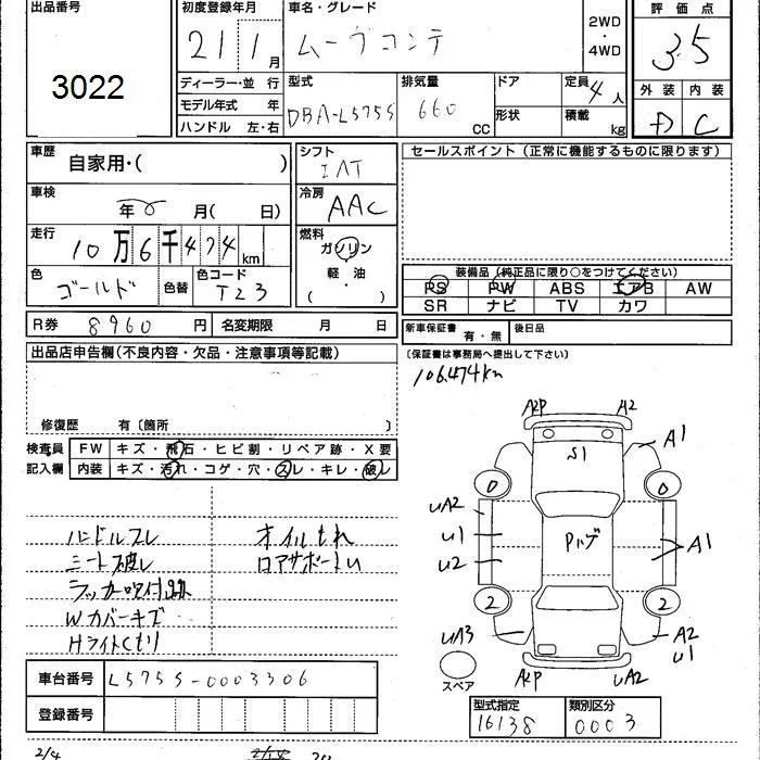 Daihatsu MOVE CONTE с аукциона Японии JU Kumamoto лот № 3022