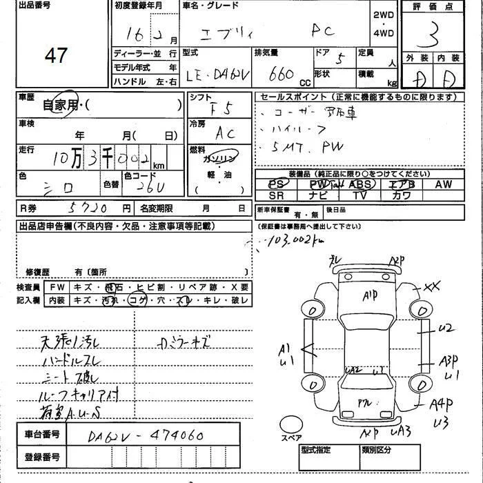 Suzuki EVERY с аукциона Японии JU Kumamoto лот № 47