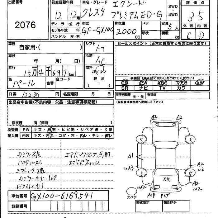 Toyota CRESTA с аукциона Японии JU Kumamoto лот № 2076