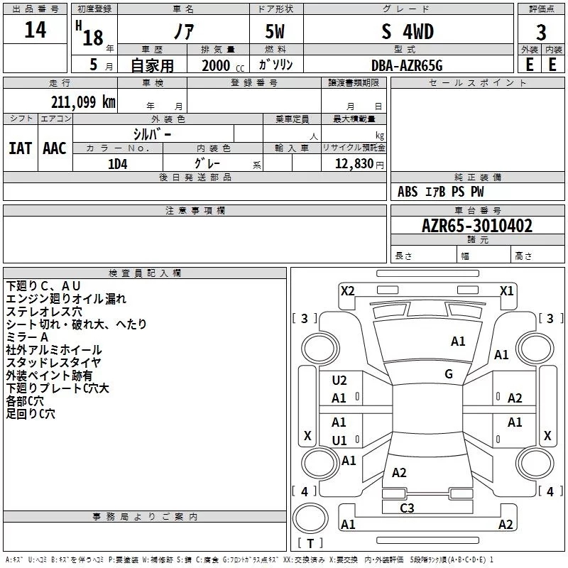 Toyota NOAH с аукциона Японии TAA Hokkaido лот № 14