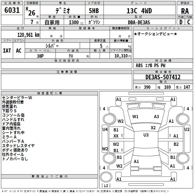 Mazda DEMIO с аукциона Японии TAA Hokkaido лот № 6031