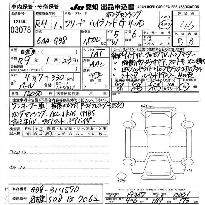 Honda FREED с аукциона Японии JU Aichi лот № 3078