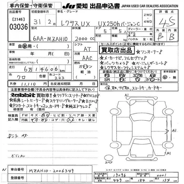 Lexus UX с аукциона Японии JU Aichi лот № 3036