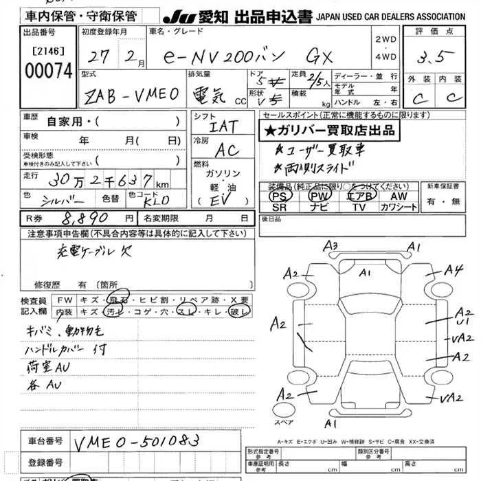 Nissan NV200 с аукциона Японии JU Aichi лот № 74