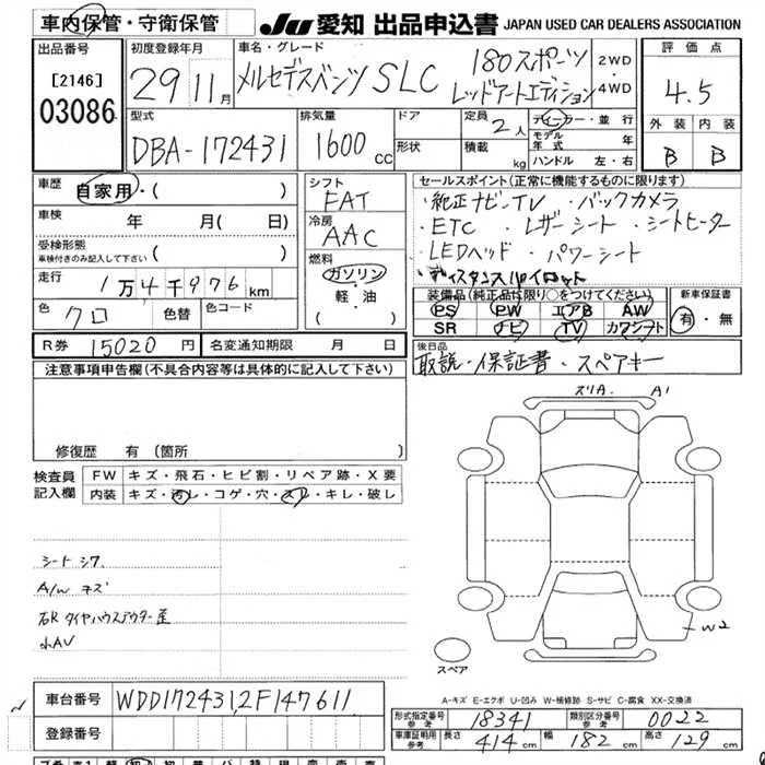 Mercedes-Benz SLC с аукциона Японии JU Aichi лот № 3086