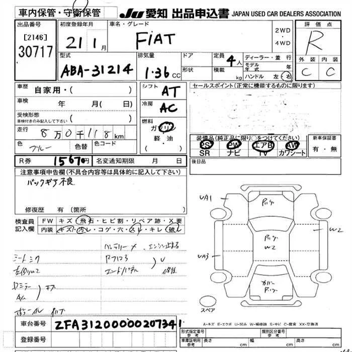 Fiat 500 с аукциона Японии JU Aichi лот № 30717