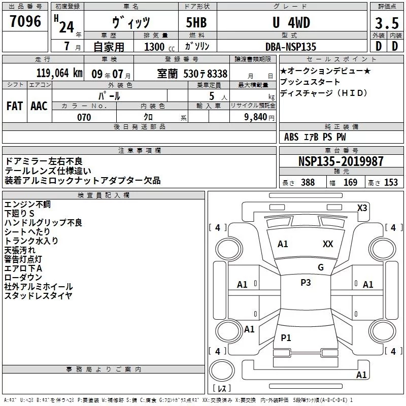 Toyota VITZ с аукциона Японии TAA Hokkaido лот № 7096