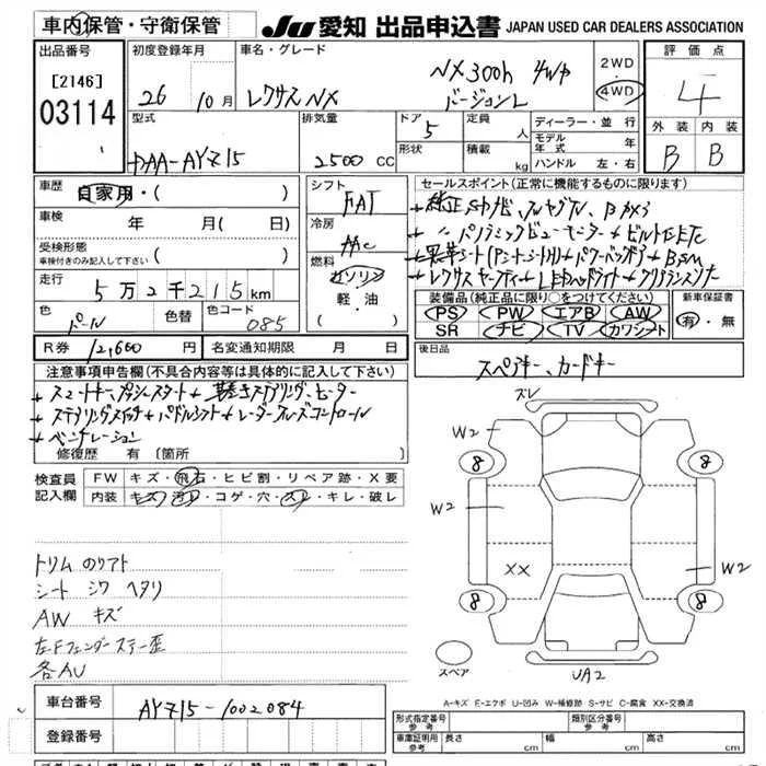 Lexus NX с аукциона Японии JU Aichi лот № 3114