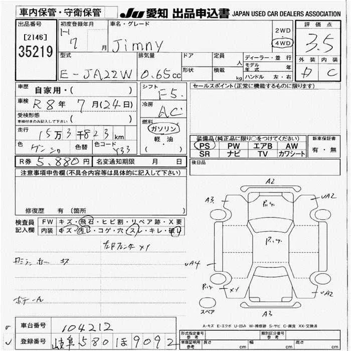 Suzuki JIMNY с аукциона Японии JU Aichi лот № 35219
