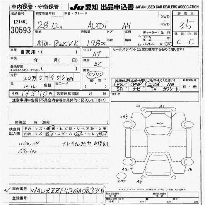 Audi A4 с аукциона Японии JU Aichi лот № 30593