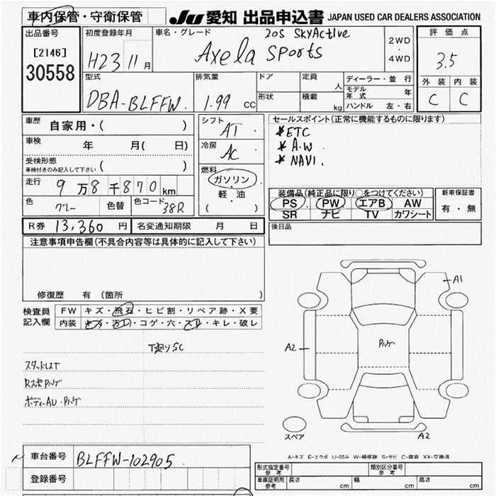 Mazda AXELA с аукциона Японии JU Aichi лот № 30558