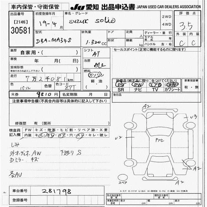 Suzuki SOLIO с аукциона Японии JU Aichi лот № 30581