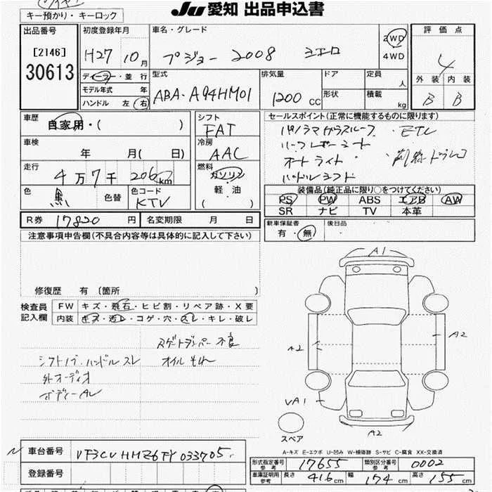 Peugeot 2008 с аукциона Японии JU Aichi лот № 30613