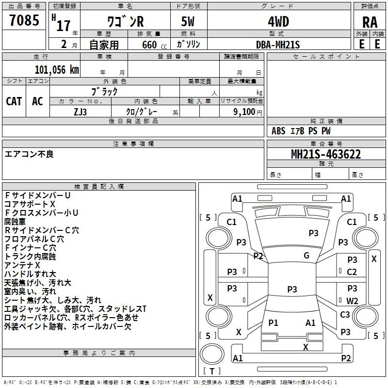 Suzuki WAGON R с аукциона Японии TAA Hokkaido лот № 7085