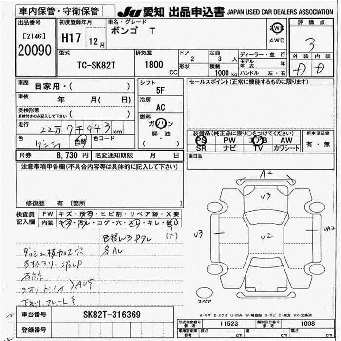 Mazda BONGO с аукциона Японии JU Aichi лот № 20090