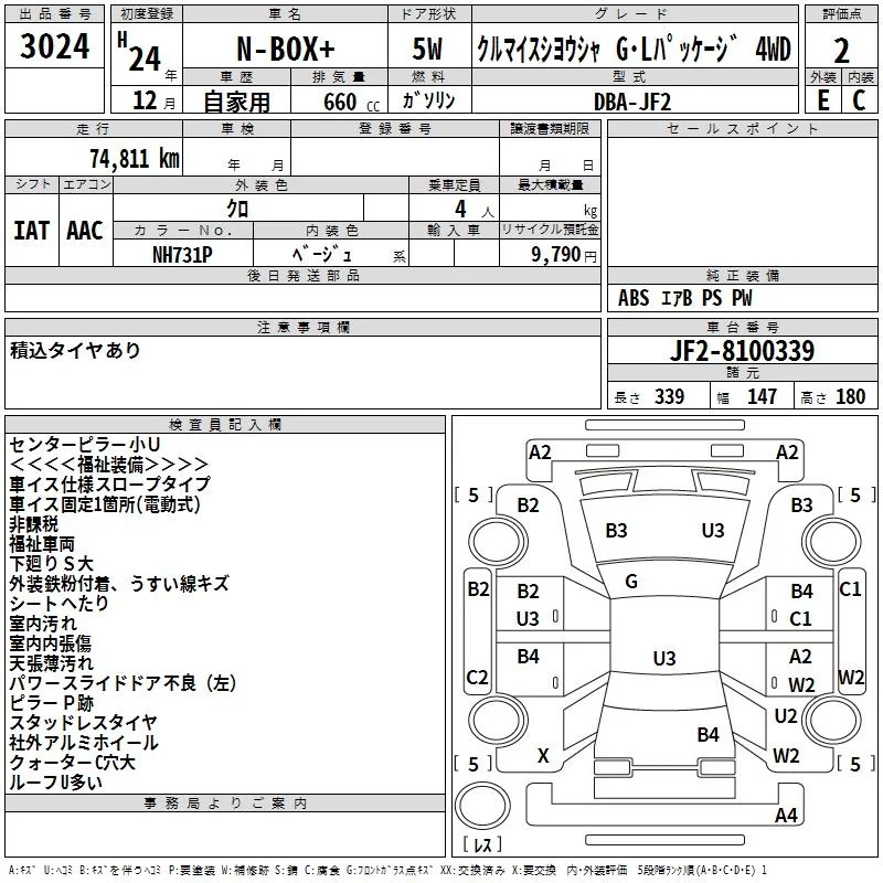 Honda N BOX PLUS с аукциона Японии TAA Hokkaido лот № 3024