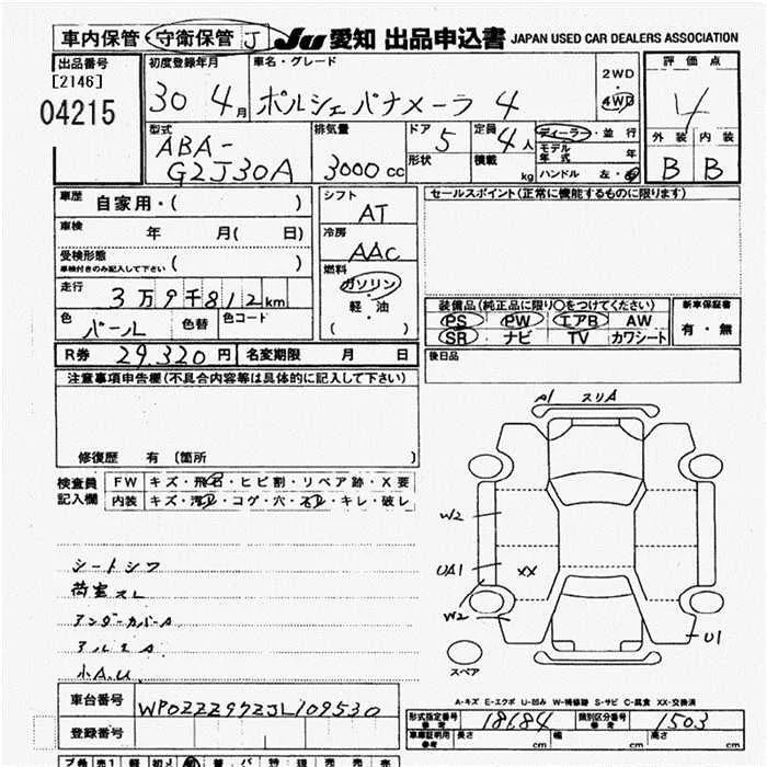 Porsche PANAMERA с аукциона Японии JU Aichi лот № 4215