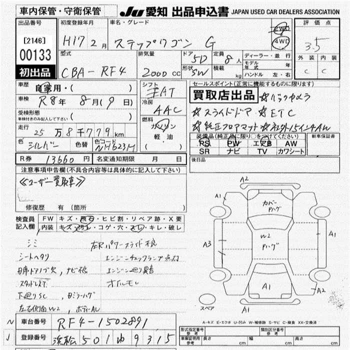 Honda STEP WAGON с аукциона Японии JU Aichi лот № 133